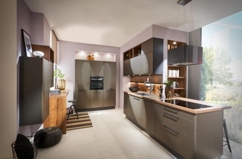 Dokonując przegląd trendów kuchennych nie można nie zauważyć jednej z tendencji – ciemne meble pojawiają się w aranżacjach coraz częściej. Elegancka czerń, grafit, granatowy oraz brązy pomagają tworzyć stylowe, szykowne wnętrza. To kolory kojarzące się z powagą, spokojem i elegancją. Doskonale pasują do nich bogate, wyraziste detale: złoto i miedź. Jeśli tylko metraż kuchni na to pozwala (ciemna kolorystyka wymaga przestrzeni!) oraz wnętrze doświetlone jest naturalnym światłem warto zwrócić uwagę na takie aranżacje. Jeśli wahasz się i nie wiesz jak urządzić nowoczesna i modna kuchnie, zapraszamy do odwiedzin naszego salonu – Studio Sto Procent – meble z Radomia.