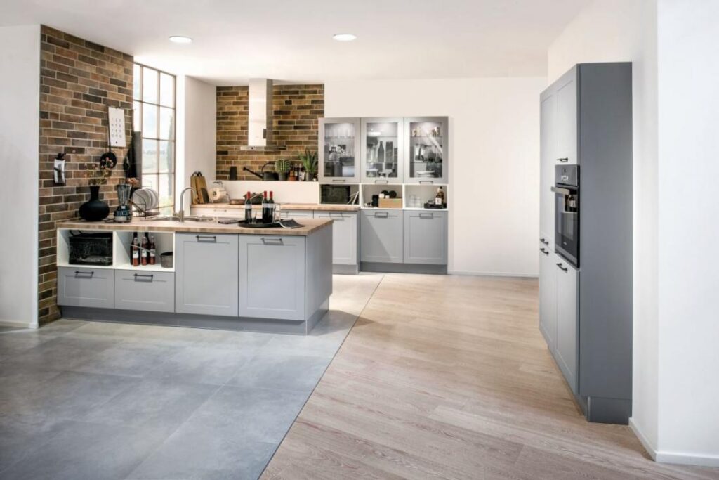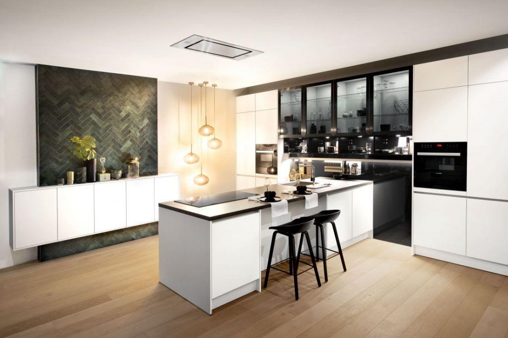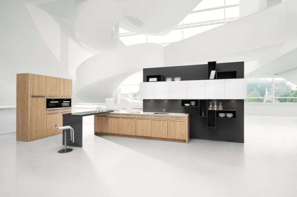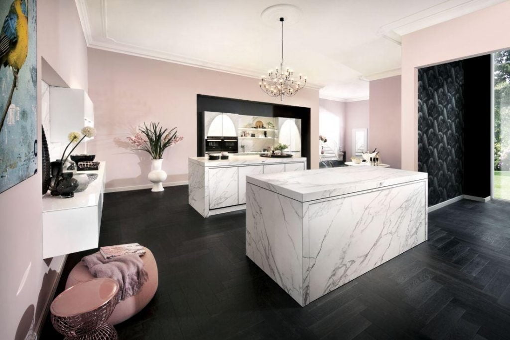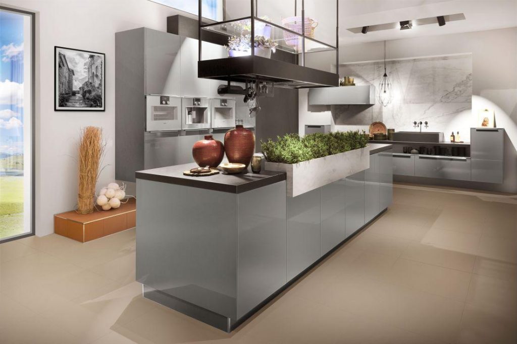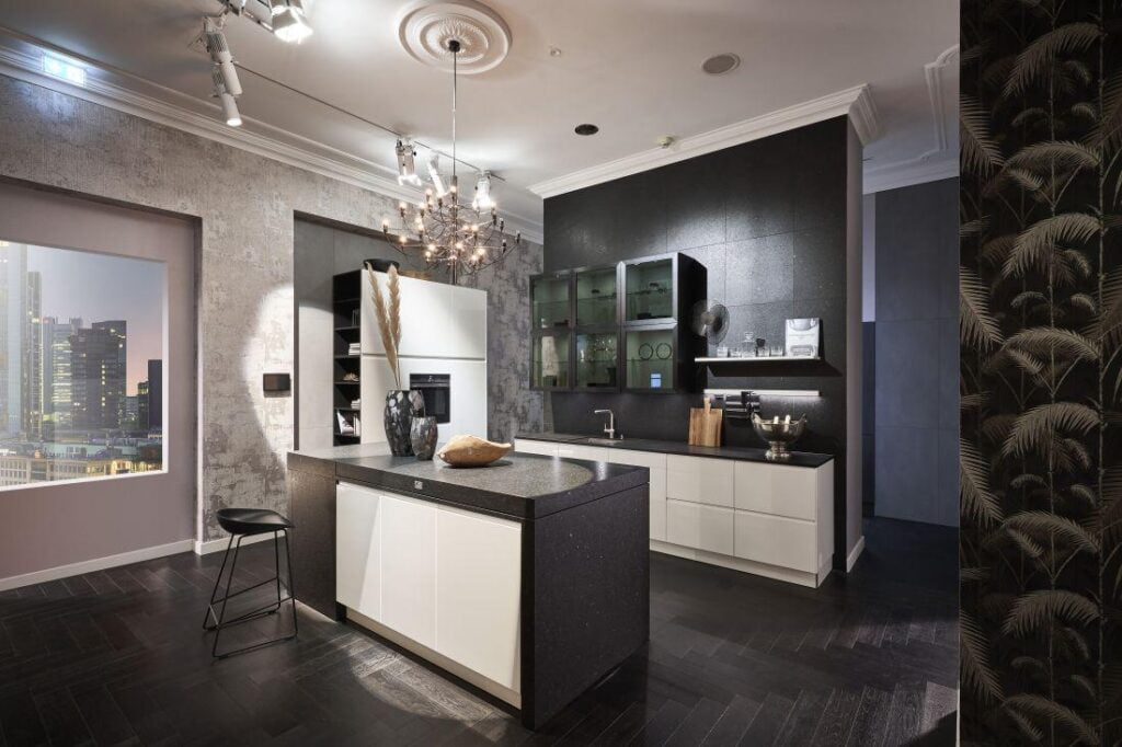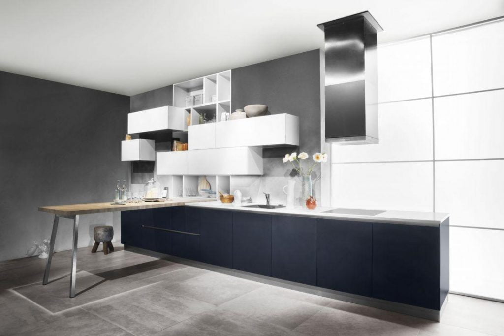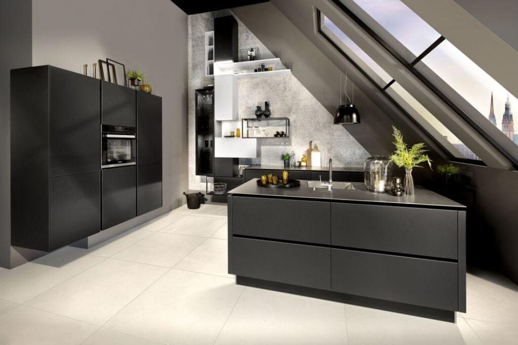 Niemieckie kuchnie w stylu nowoczesnym charakteryzują się nietypowymi połączeniami form i materiałów oraz ciekawą kolorystyką. Białe fronty w wysokim połysku zestawione z matową szarością z linii AV2045 odzwierciedlającą barwę naturalnego marmuru, to propozycja na stylowe kombinacje kolorystyczne od kuchnie haecker! Oba odcienie efektownie ze sobą współgrają, a przy tym każdy z nich nadaje wnętrzu elegancji. To również świetne tło do podkreślenia niestandardowej konstrukcji wyspy kuchennej. Jej wielowymiarową forma efektownie podkreślają meble o gładkich frontach.