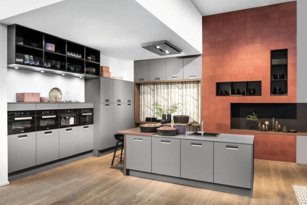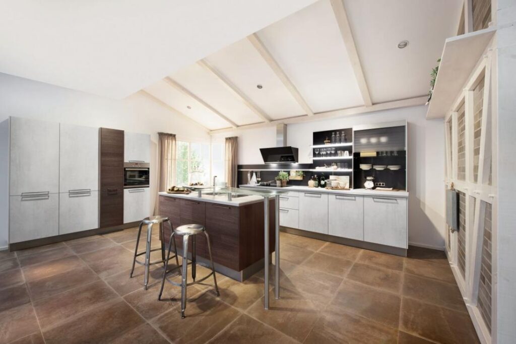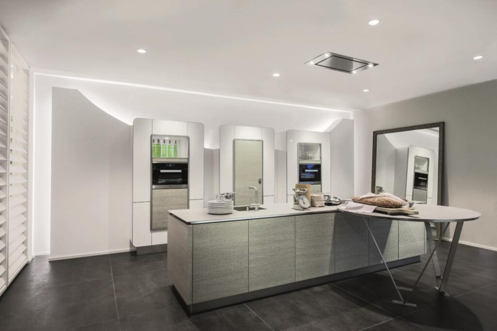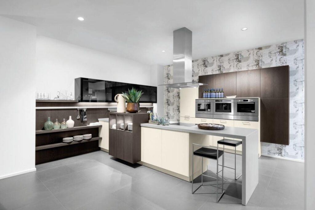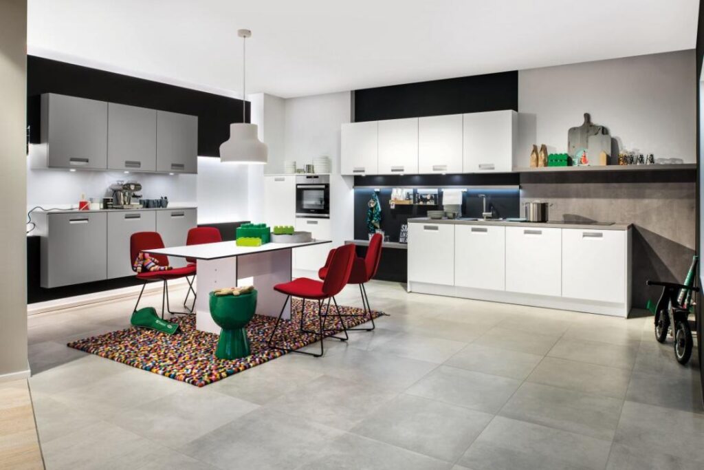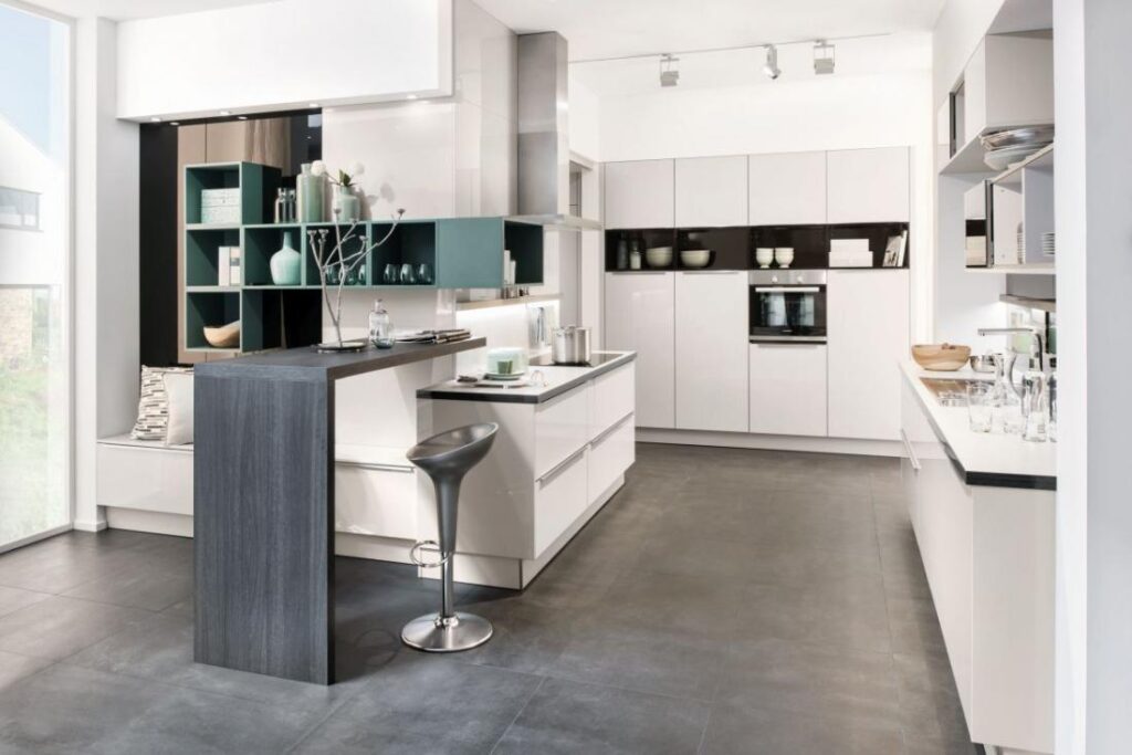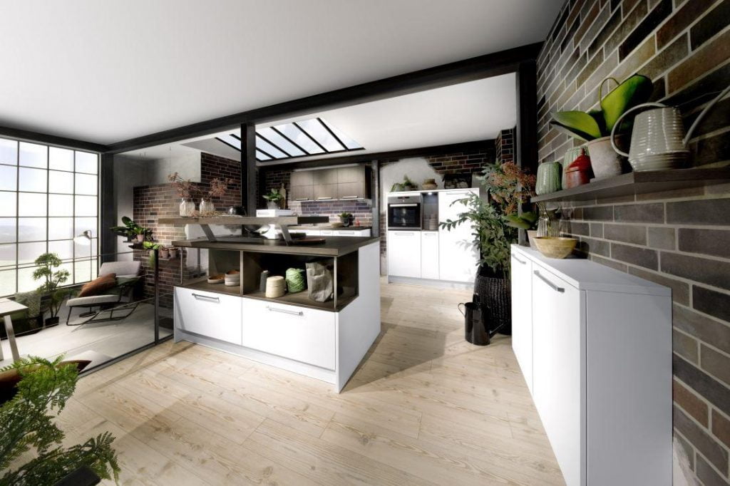 Niemieckie kuchnie w stylu nowoczesnym charakteryzują się nietypowymi połączeniami form i materiałów oraz ciekawą kolorystyką. Białe fronty w wysokim połysku zestawione z matową szarością z linii AV2045 odzwierciedlającą barwę naturalnego marmuru, to propozycja na stylowe kombinacje kolorystyczne od kuchnie haecker! Oba odcienie efektownie ze sobą współgrają, a przy tym każdy z nich nadaje wnętrzu elegancji. To również świetne tło do podkreślenia niestandardowej konstrukcji wyspy kuchennej. Jej wielowymiarową forma efektownie podkreślają meble o gładkich frontach.