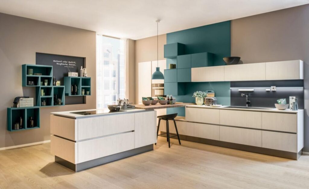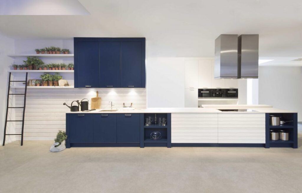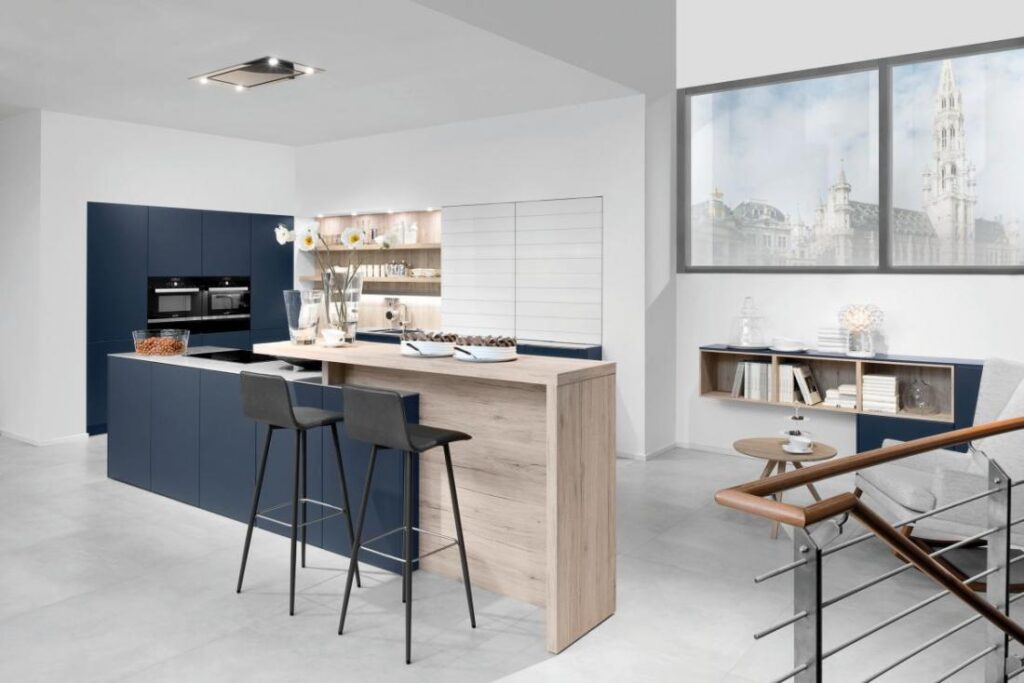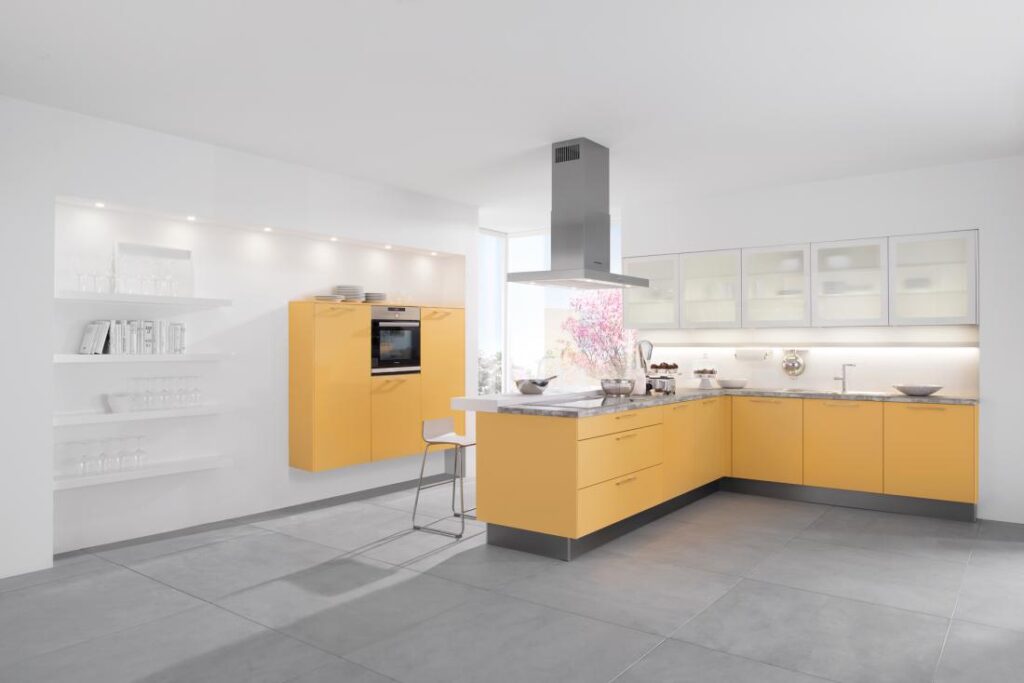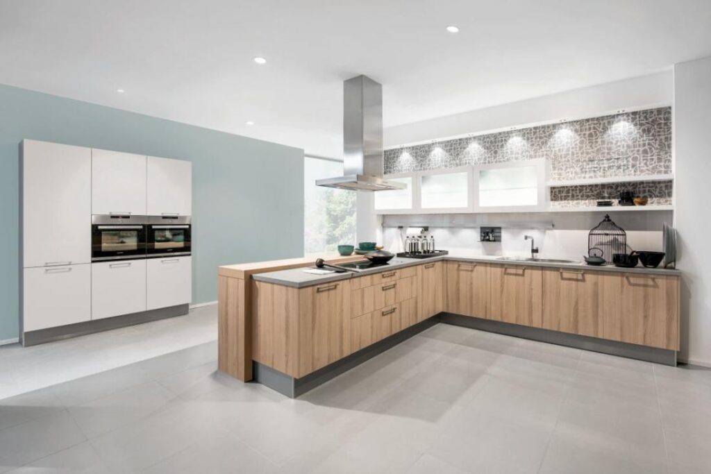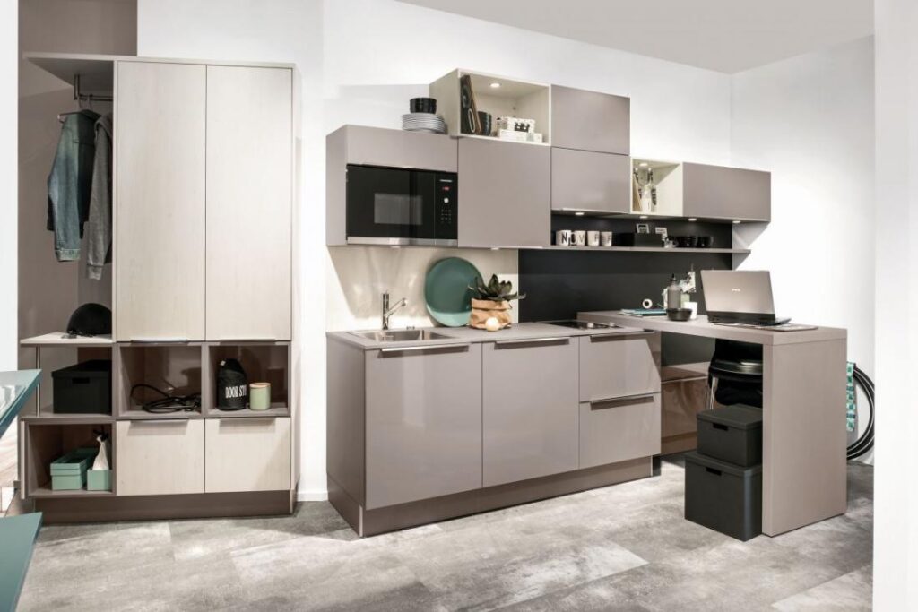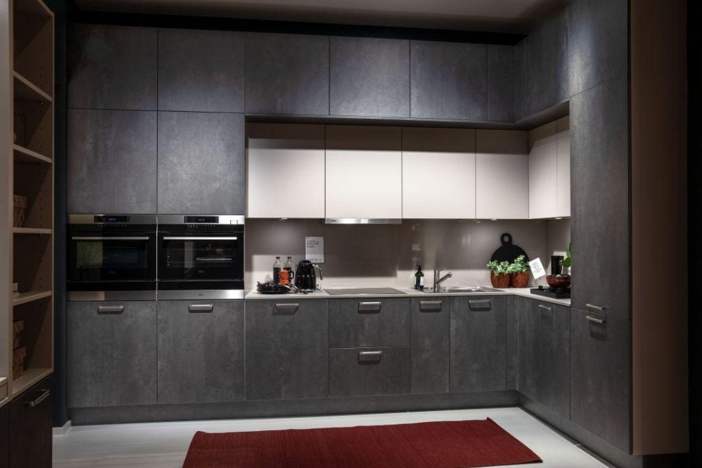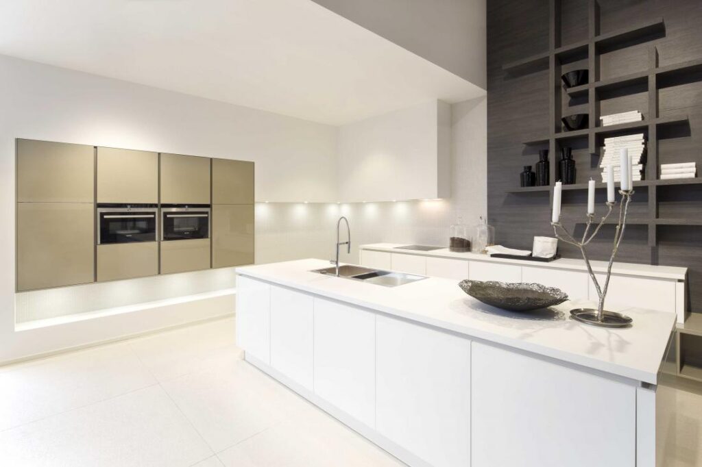 Niemieckie kuchnie w stylu nowoczesnym charakteryzują się nietypowymi połączeniami form i materiałów oraz ciekawą kolorystyką. Białe fronty w wysokim połysku zestawione z matową szarością z linii AV2045 odzwierciedlającą barwę naturalnego marmuru, to propozycja na stylowe kombinacje kolorystyczne od kuchnie haecker! Oba odcienie efektownie ze sobą współgrają, a przy tym każdy z nich nadaje wnętrzu elegancji. To również świetne tło do podkreślenia niestandardowej konstrukcji wyspy kuchennej. Jej wielowymiarową forma efektownie podkreślają meble o gładkich frontach.