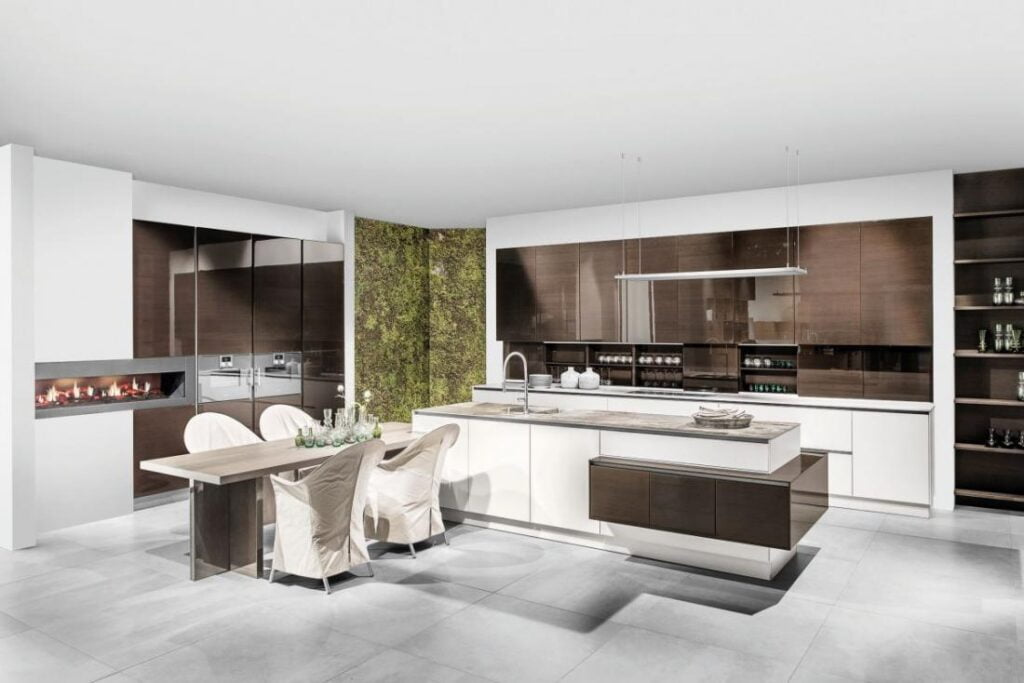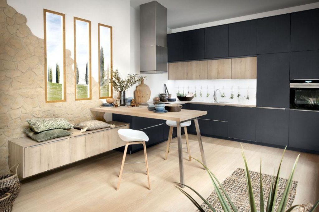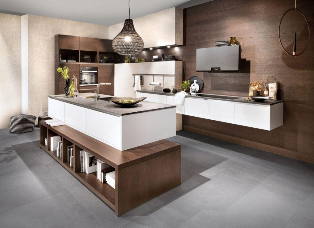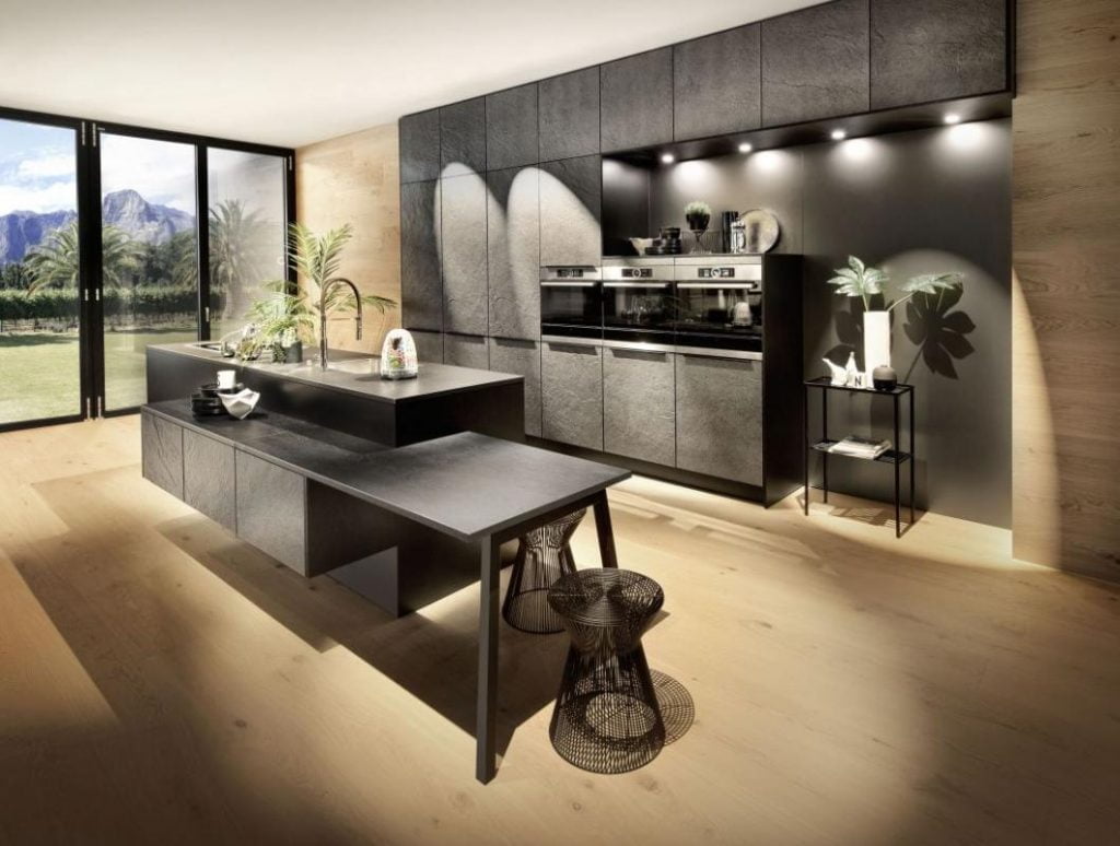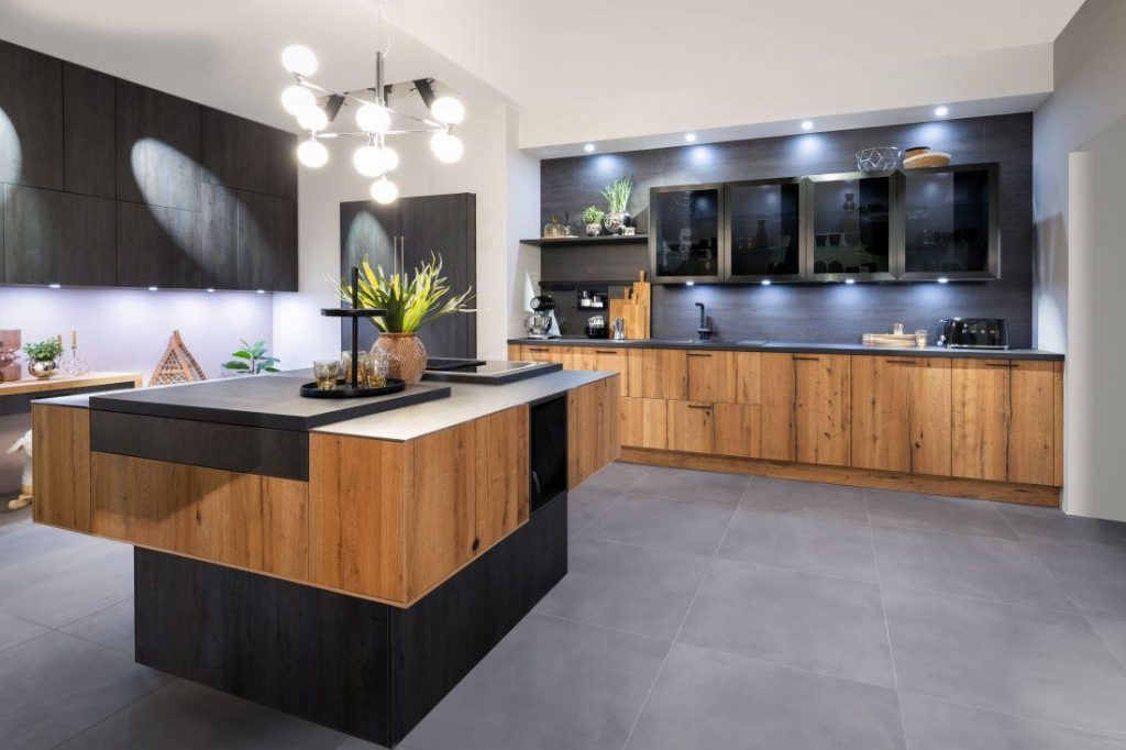Proste formy, szlachetne materiały i innowacyjne technologie – to podstawowe wyznaczniki kuchennych aranżacji w nowoczesnym stylu. Kuchnie Hacker wiedzą jak podkreślić atuty minimalistycznych kuchni! Długa bryła kuchennej wyspy w odcieniu industrialnej szarości Lavagrau oraz prostopadle przechodzący przez nią blat z prawdziwego marmuru, to jedna z wielu możliwości projektowych i przykład, jakie rozwiązania możemy zaproponować do Twojego wnętrza. Wśród szerokiej gamy dostępnych kolorów, materiałów i ciekawych dekorów, nie może oczywiście zabraknąć naturalnego drewna. Efektowny fornir wykonany z tego surowca podniesie klasę Twojej nowoczesnej kuchni!