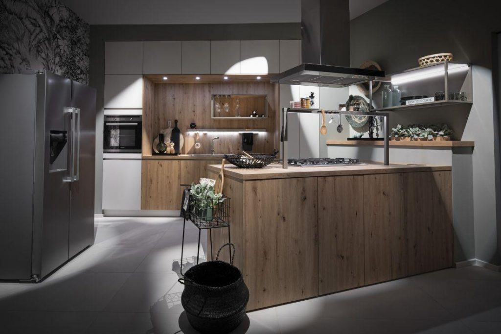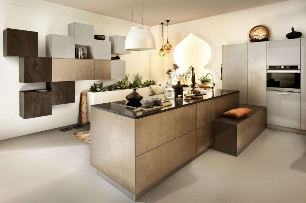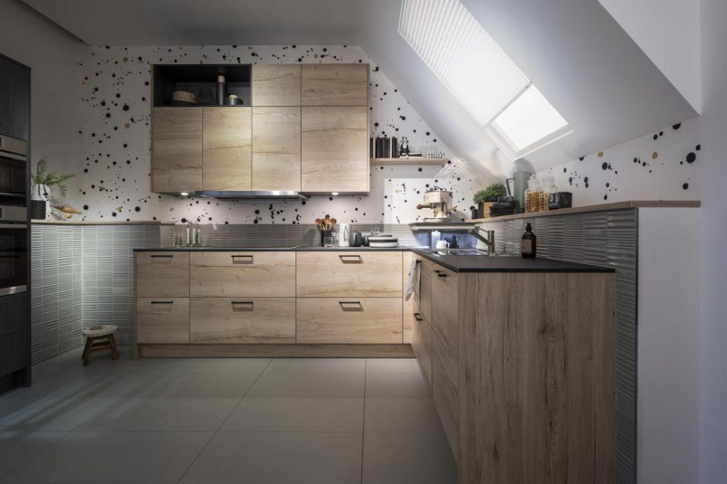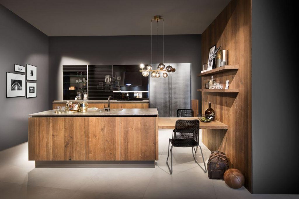 Uzyskanie wyjątkowego klimatu w kuchni jest możliwe dzięki zastosowaniu szlachetnych, naturalnych materiałów. Jedną z takich propozycji od kuchnie haecker jest zastosowanie we wnętrzu forniru, który podkreśli ekskluzywność i jednocześnie przytulność kuchni. Kuchenne meble w stonowanej kolorystyce bazujące na minimalistycznych, prostych formach subtelnie urozmaicą otwarte półki umieszczone w ciągu regularnej zabudowy. Dodatki i inne elementy aranżacji, np. lampy, wykonane z drewna również sprawdzą się w aranżacji inspirowanej domowym klimatem i naturalnymi materiałami. Przytulność całej kompozycji podkreśli również ciepła barwa światła.