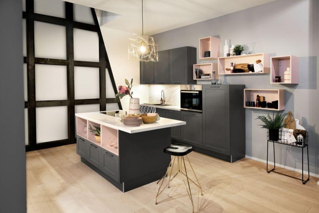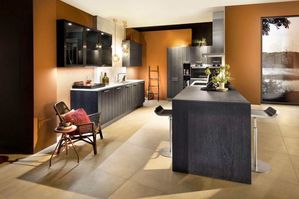 Kuchnie niemieckie oprócz najwyższej jakości materiałów i precyzji wykonania, cechuje oryginalny design, który zachwyci przyszłych użytkowników wnętrza. Bazując na nietypowych zestawieniach kolorów i faktur, tworzymy kuchnie o unikatowym charakterze, które jednocześnie wpisuje się w najnowsze trendy aranżacyjne. Złoto, które coraz częściej pojawia się we wnętrzach, można w różnorodny sposób komponować z większością odcieni z palety barw. Jedną z takich propozycji jest połączenie mebli z linii AV035 GL Graphit z metalicznym odcieniem złota (AV4075). Surowość grafitu zostaje w ten sposób przełamana, a kuchnia nabiera nowoczesnego charakteru. Efekt? Bardzo stylowe i ponadczasowe wnętrze!